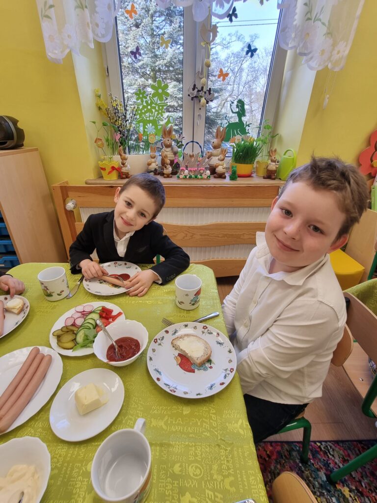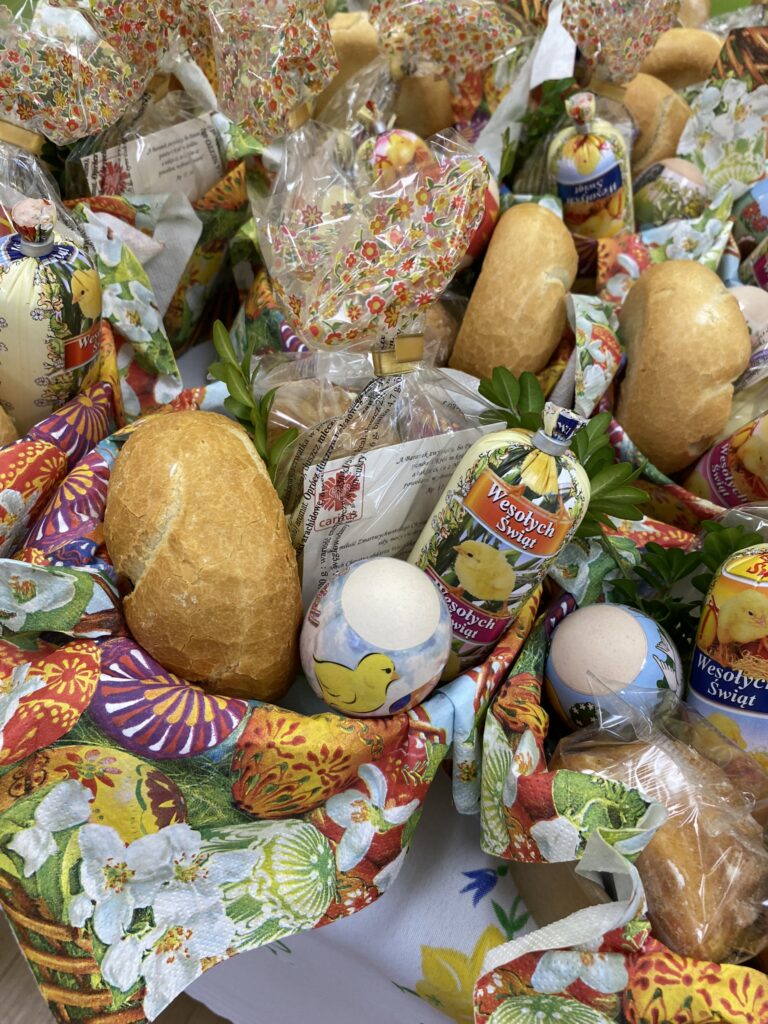 Jak co roku w naszym Przedszkolu Ksiądz święci koszyczki z pokarmem i każde dziecko zabiera koszyczek do domu.
