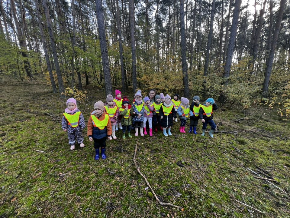 Przedszkolaki wybrały się na wspaniałą wycieczkę do lasu! Dzieci z wielkim zapałem zbierały grzyby, szyszki i kolorowe liście, poznając przy tym tajemnice jesiennej przyrody. Po pełnym wrażeń spacerze czekała na wszystkich pyszna niespodzianka – poczęstunek u pani Iwonki! Dziękujemy serdecznie pani Iwonie za ciepłe przyjęcie, smakołyki i miłą atmosferę. To był dzień pełen radości, przygód …