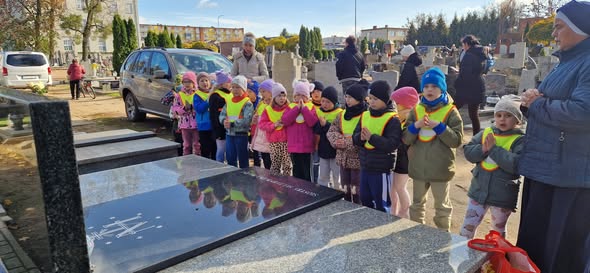W tych dniach wspominamy naszych bliskich, którzy odeszli.W przedszkolu rozmawialiśmy o tradycjach, zapalaniu zniczy i o tym, jak ważne jest pamiętać o tych, których kochamy