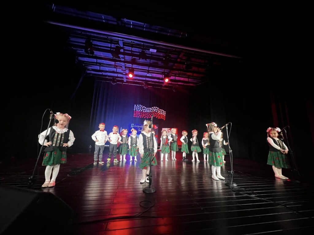 Dziś nasze przedszkolaki z dumą zaprezentowały wyjątkowy występ z okazji Święta Niepodległości Dzieci z wielkim zaangażowaniem recytowały wiersze, śpiewały pieśni patriotyczne oraz przedstawiły tańce przypominającego tym, jak ważna jest wolność i miłość do Ojczyzny