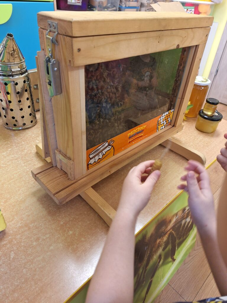 Dziś odbyły się Warsztaty Pszczelarskie. Dzieci wykonały swoje świeczki z wosku pszczelego i otrzymały dużą wiedzę na temat pszczół oraz produkcji miodu.