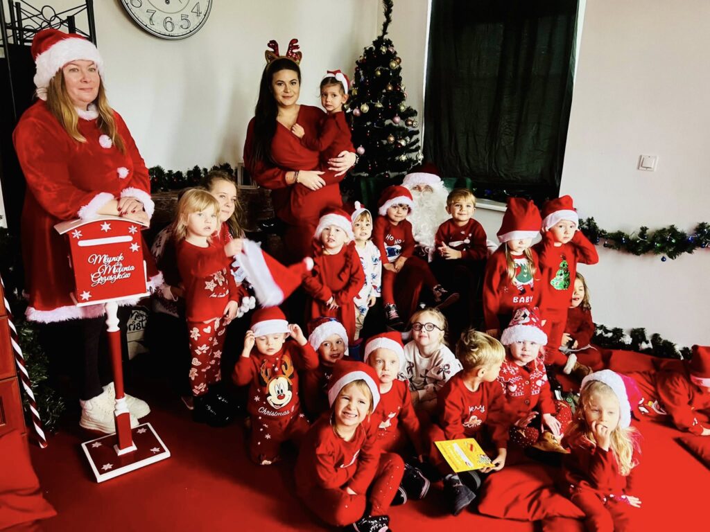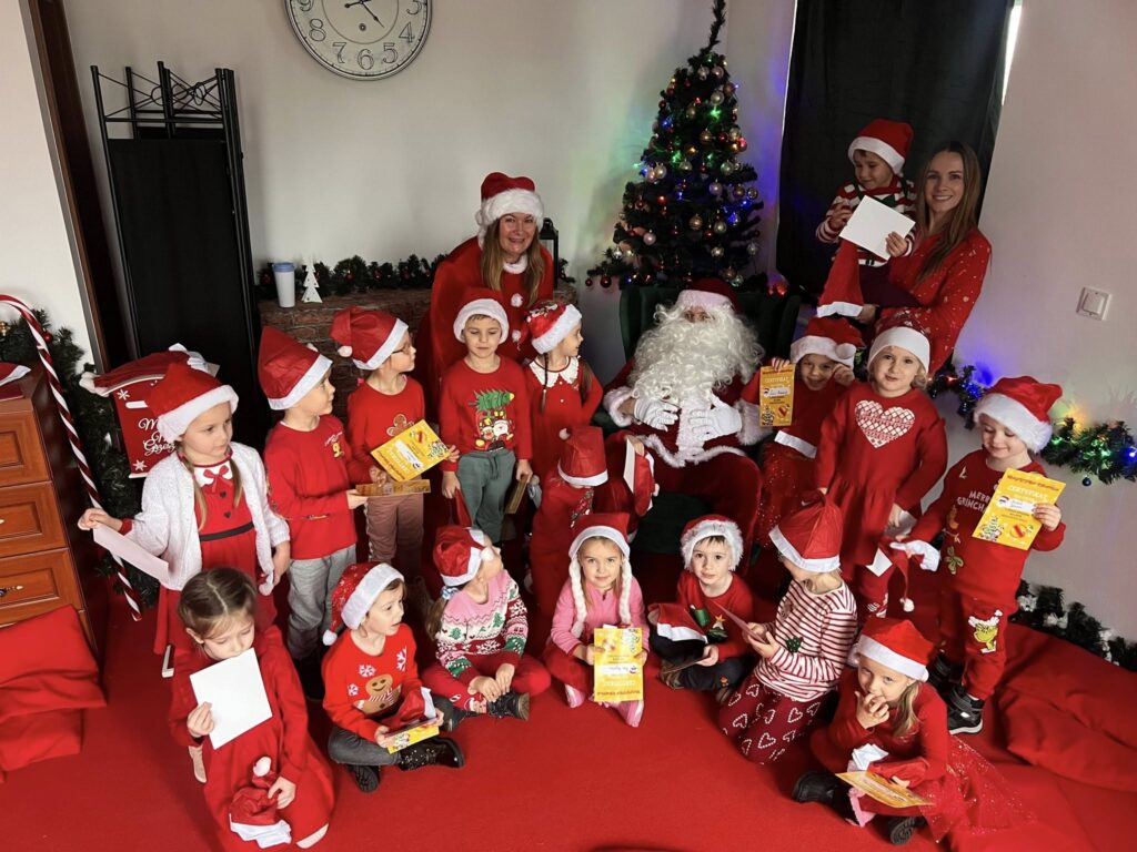 Bawiły się w sali elfów, pokonując tor przeszkód i urządzając wesołą bitwę na śnieżki. Poznały też dawne świąteczne tradycje, wąchały korzenne zapachy i oglądały stare ozdoby. Największą atrakcją było spotkanie z Mikołajem, wspólne śpiewanie i wręczenie dyplomów Pomocnika Mikołaja. Na koniec dzieci obejrzały zimową bajkę w przytulnej sali kinowej. ![]()